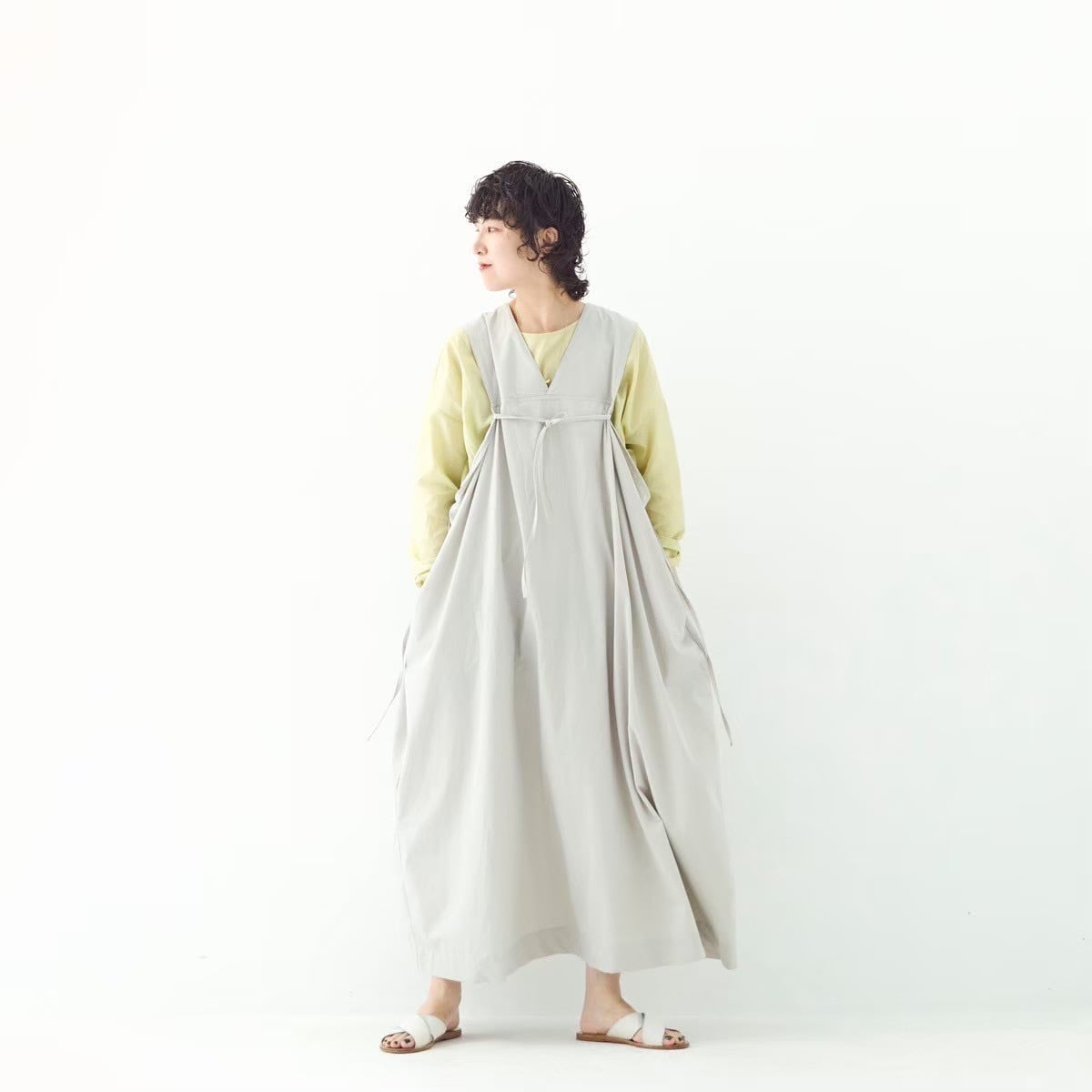 オーガニックコットンの近江晒しを使用し、高密度で程よいハリ感と落ち感が美しいワンピースです。