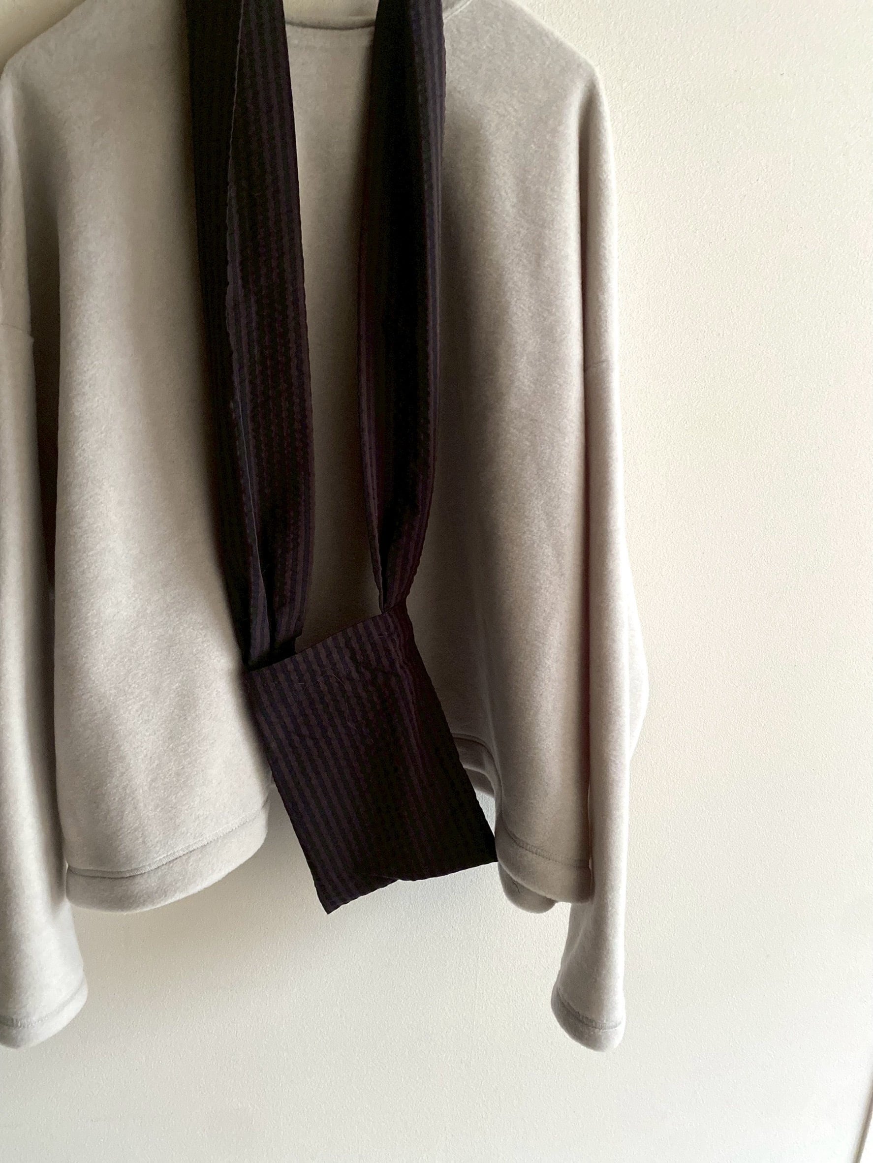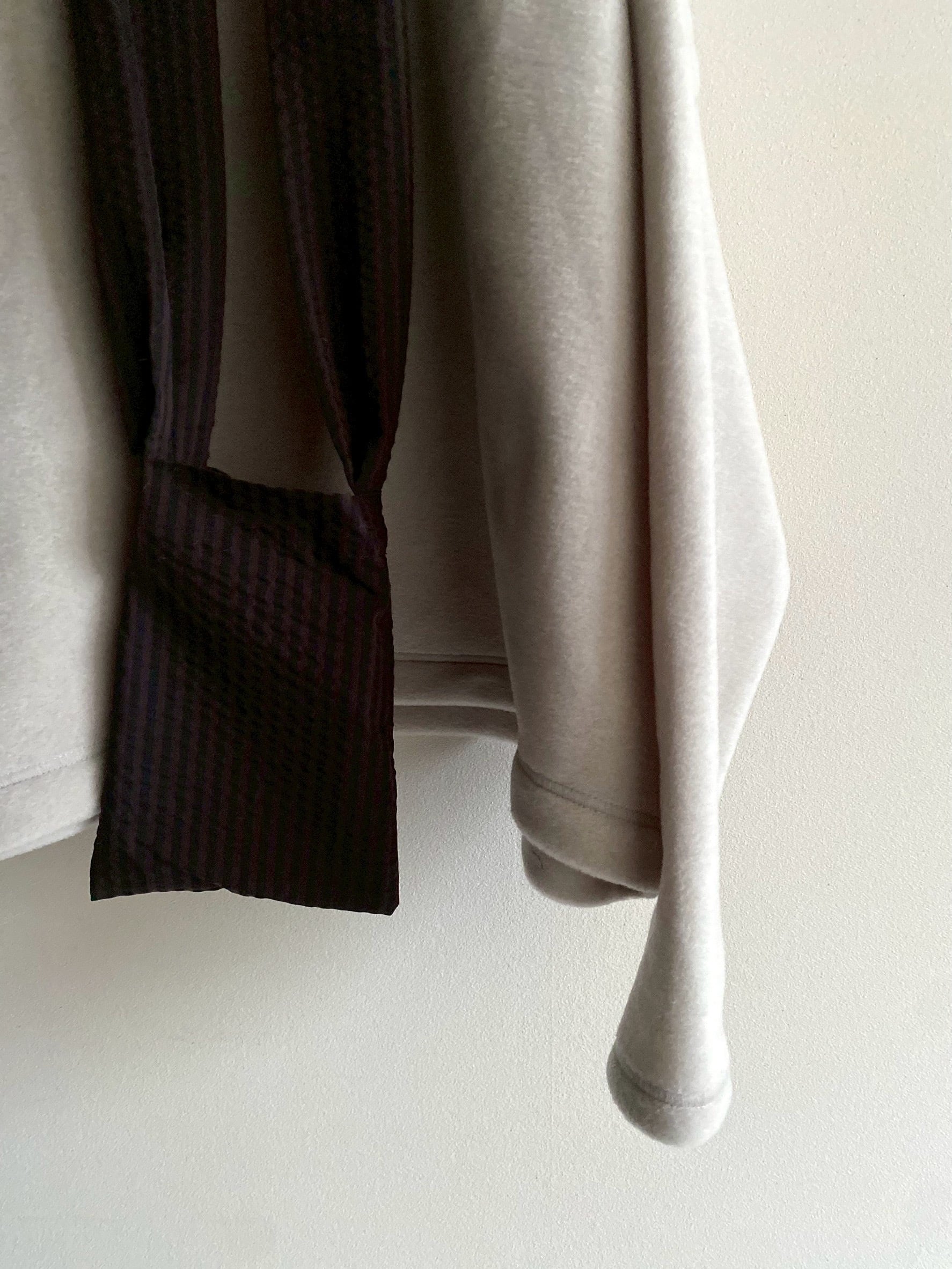 ポコポコとした縦縞の表情のあるシボが特徴的なサッカー生地で仕立てました。