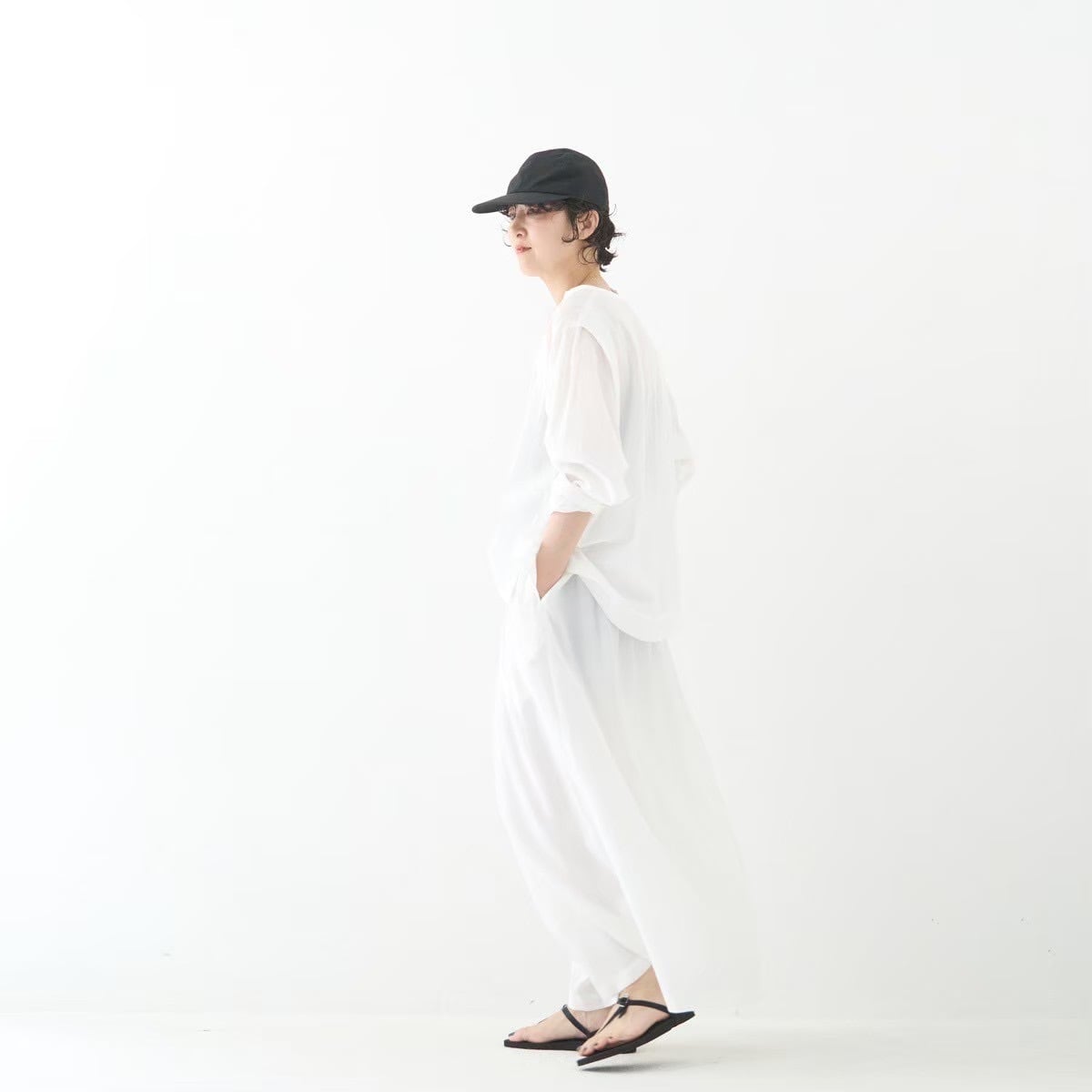 太めのウエストゴムなので、タックインなどのスタイルもおすすめです。