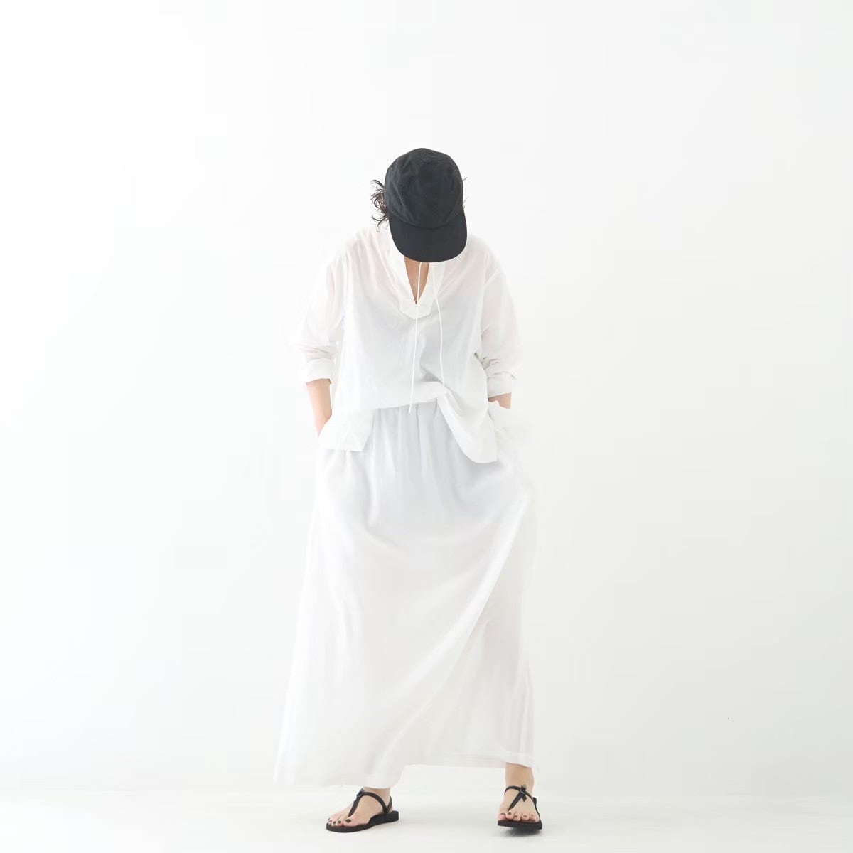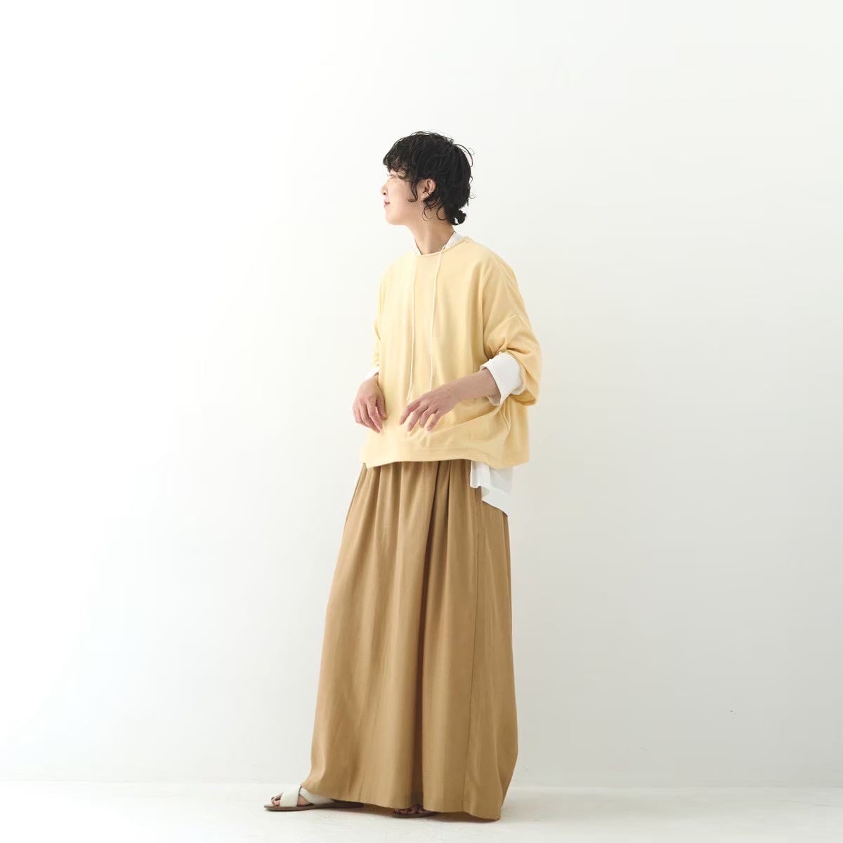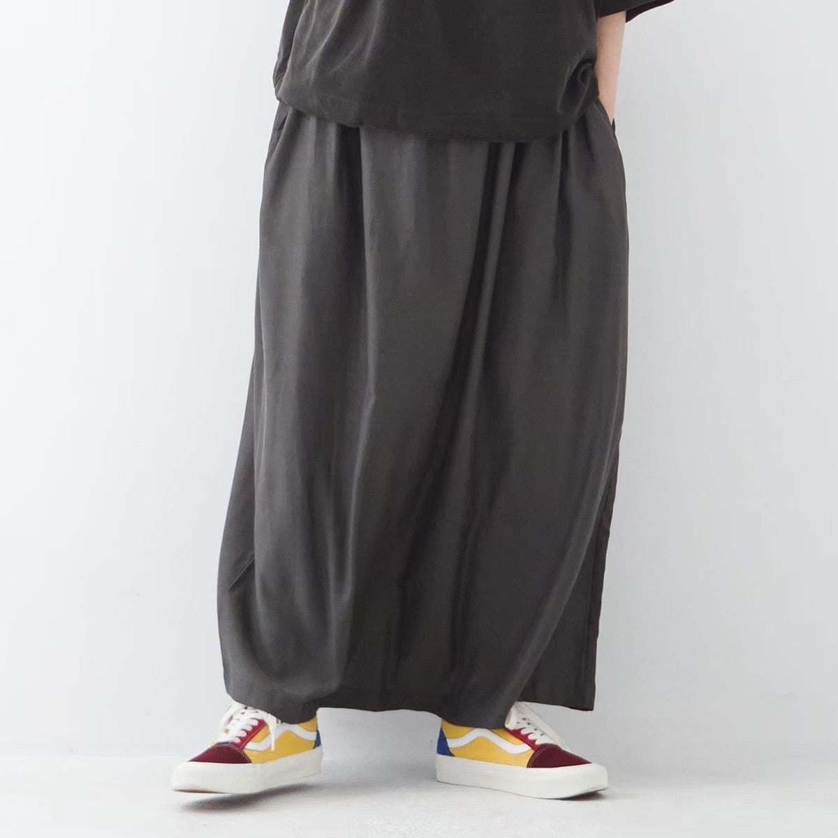 キュプラコットンの柔らかい光沢や、しなやかな落ち感が特徴的なロングスカートです。