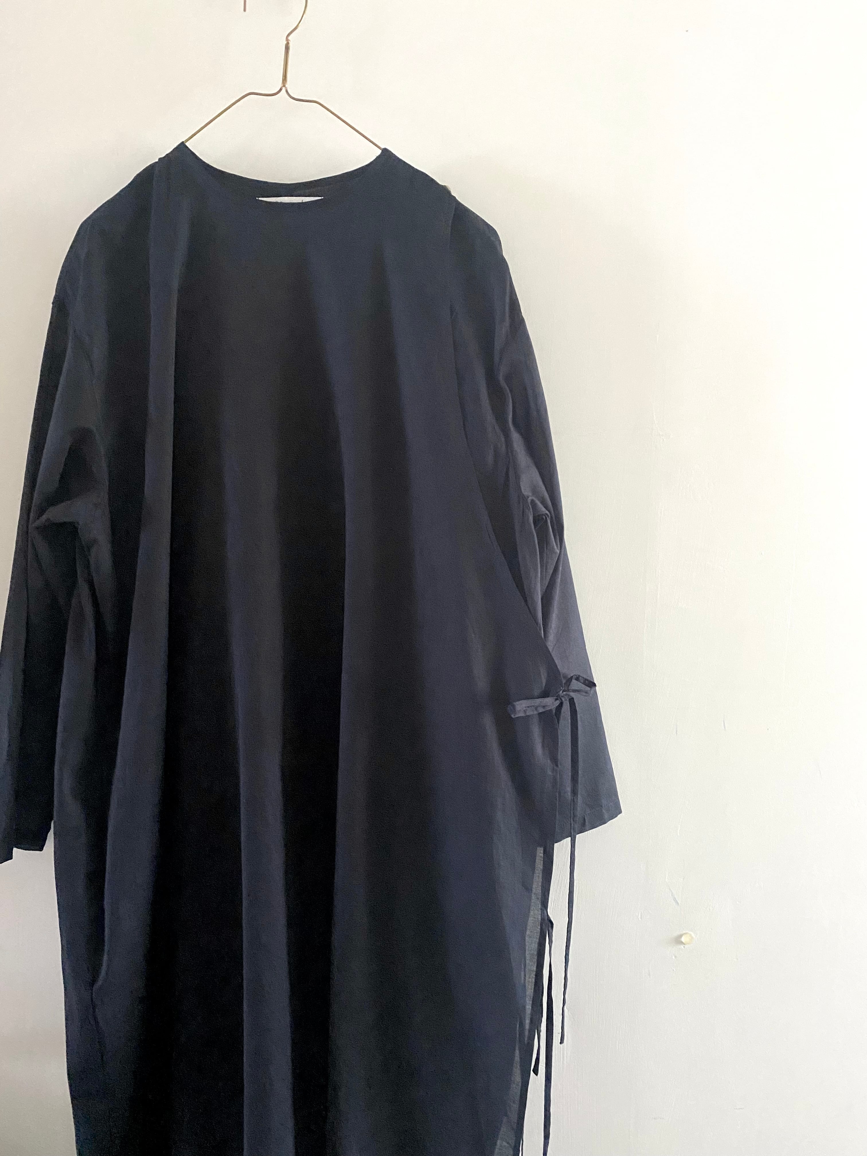 前を重ね合わせて包みこむようなデザインや、肩の釦ループ、サイドのリボンなど、ディテールにこだわりが詰まった一枚。