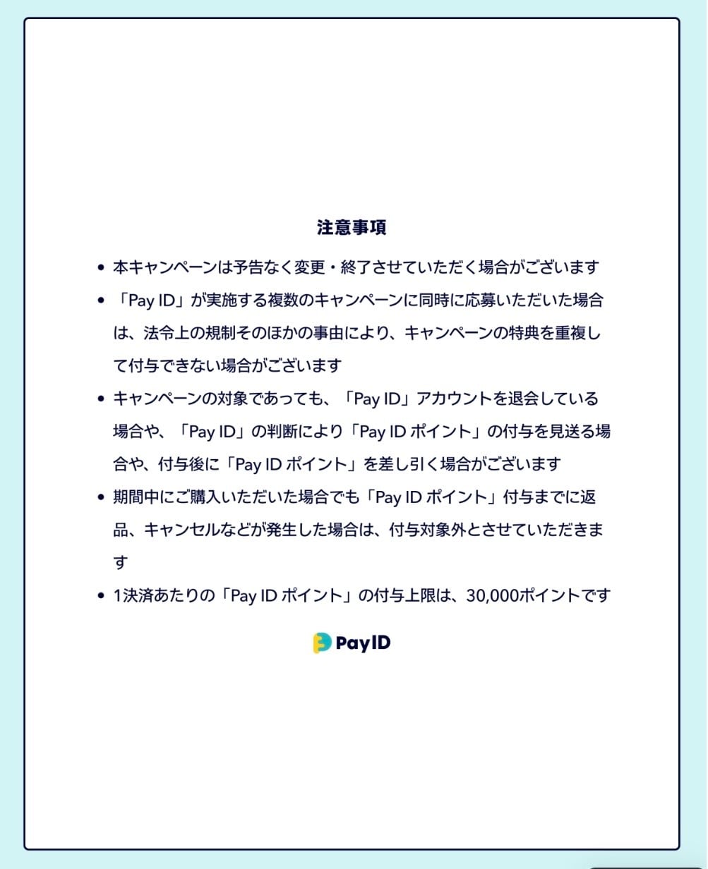 「Pay IDアプリ」から「Pay ID」でログインし、Pay IDクレジットカード決済とPay IDあと払い決済でお買いものすると、キャンペーンの対象となります。